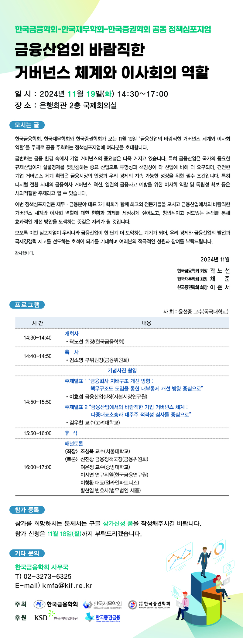 11월 19일 『금융산업의 바람직한 거버넌스 체계와 이사회의 역할』한국금융학회-한국재무학회-한국증권학회 공동 심포지엄 개최 안내